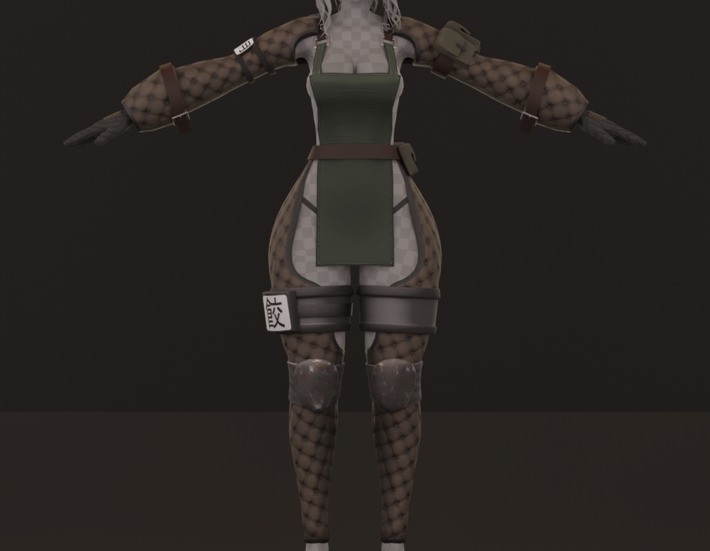 The outfit is divided into 4 parts: Top, Gloves, Knees, Thong, Pants, for your toggling convenience, and can easily be merged in blender for 1 whole outfit. The outfit comes with 6 materials (Top, Top Accessories, Knees, Pants, Thong, Gloves).